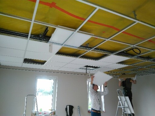 Sufity podwieszane możemy robić z kasetonów wełnianych kwadratowych lub prostokątnych. Takie kasetony pokryte są specjalną powłoką z wełny mineralnej lub szklanej pochłaniającą zanieczyszczenia. Sufit podwieszany z tych kasetonów nie ulega tak szybko zabrudzeniu, ale jak nam się to przydarzy to bardzo łatwo je wyczyścić. Wełna doskonale wygłusza hałas.