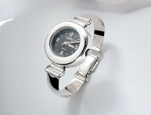 Zapraszam do kupna srebrnego zegarka niezawodnej firmy OSIN. Zegarek ma dobrej klasy elektroniczny japoński mechanizm Miyota. Mechanizm zegarka oprawiony jest w srebrną kopertę (również z tyłu - nie powoduje alergii). Posiada czytelną czarną tarczę z wyraźnymi indeksami godzin. Wskazówki koloru srebrnego. Szkło mineralne-odporne na zarysowania. Paski zegarka są zapinane mocnym zapięciem i otwierają się na zawiasach. Na zapięciu regulacja długości o 5 mm. Wszystkie części zegarka wykonane są ze srebra pr.925.
