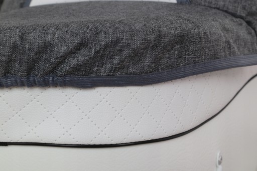 Wózek posiada unikatowe wykończenie z tkaniny "Szary Len".