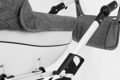 Zastosowana tkanina, oraz wstawki z Eko-Skóry z przeszyciami nie są dostępne w żadnym innym wózku lalkowym.