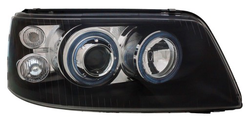 - światła pozycyjne - 4 ringi świetlne (angel eyes), po 2 ringi na jeden reflektor, jeden ring posiada 4 wymienne żarówki (żarówki GRATIS w zestawie - 16 szt.) + dodatkowo żarówka W5W