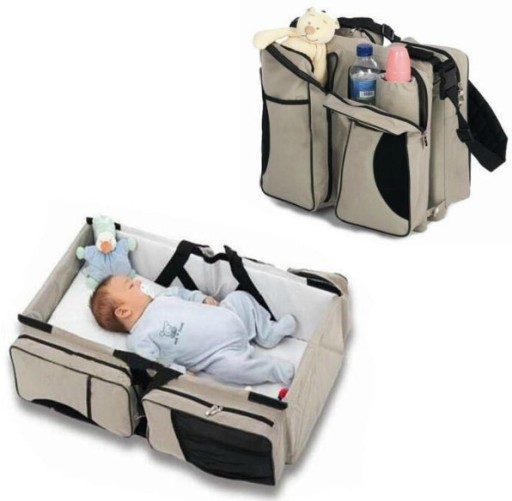 Jednym ruchem ręki możesz zamienić tę pojemną torbę w wygodne łóżeczko turystyczne lub przewijak