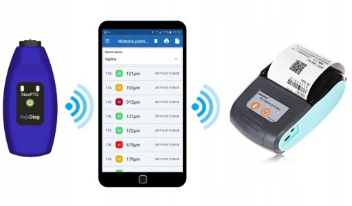 Dzięki nowoczesnej aplikacji można natychmiastowo stworzyć i wydrukować historię z przeprowadzonych pomiarów na drukarce bluetooth.