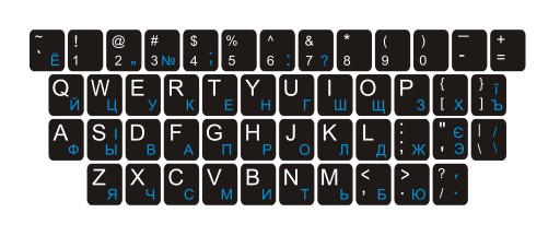 Наклейки на клавиатуру QWERTY + УКРАИНСКАЯ КИРИЛЛИЦА