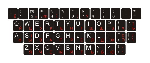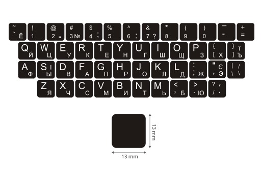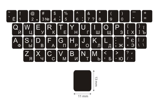 Naklejki na klawiature QWERTY + CYRYLICA UKRAIŃSKA - ROSYJSKA 11x13 mm - 13x13 mm