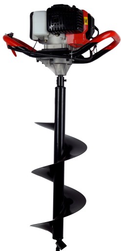 Rączki pokryte miękką gumą zapewniają większy komfort pracy. Paca w jedną lub dwie osoby. Doskonała przekładnia, solidne wykonanie. Wiertnica spalinowa wyposażona w wytrzymały silnik o mocy 6,5KM