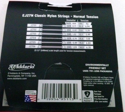 Komplet 6 strun Nylonowych wysokiej jakości D'Addario do gitary klasycznej - prosto z USA