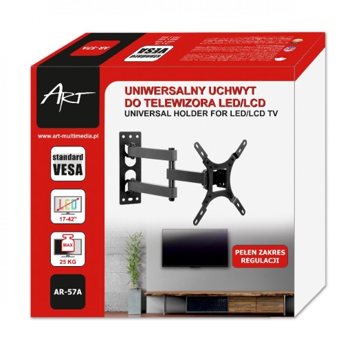 Uchwyt ścienny do TV firmy ART model AR-57A, 17-42", do 25kg z regulacją pion/poziom