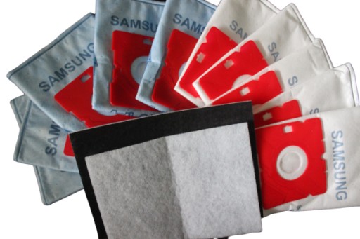 10 sztuk najwyższej jakości worków z mikrowłókna+2 filtry do docięcia do odkurzaczy marki SAMSUNG: