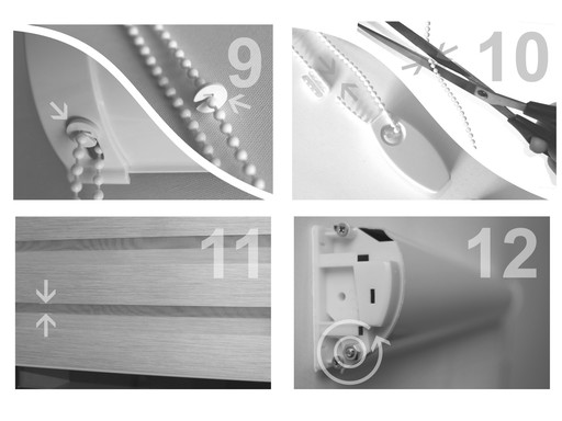 - Na łańcuszek zakładamy ograniczniki w celu ustalenia pozycji maksymalnego rozwinięcia i zwinięcia rolety (zdj.9).