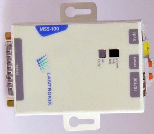 Używany, całkowicie sprawny i w idealnym stanie element o symbolu: MSS-100, produkt firmy Lantronix. Zapewnia łatwy sposób podłączenia praktycznie dowolnego urządzenia z portem szeregowym do sieci Uzyskaj dostęp Ethernet 10 / 100Base-T i zarządzaj nimi zdalnie przez sieć LAN, WAN lub Internet