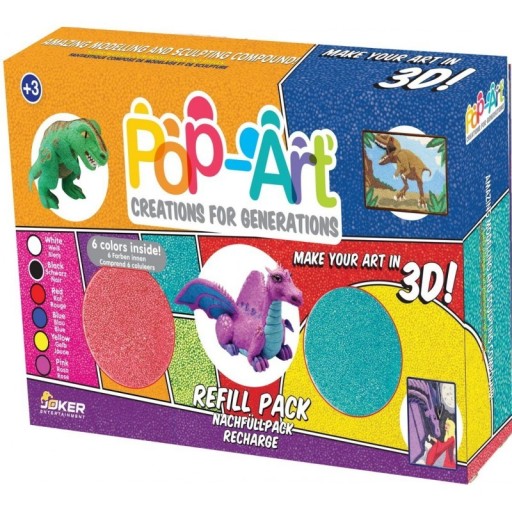 Ostrzeżenia! Produkt nie nadaje się dla dzieci poniżej 3 lat ze względu na zawartość małych elementów. Istniej ryzyko zadławienia. Uwaga: Należy unikać długotrwałego kontaktu masy POP-ART z tkaninami/dywanem/wykładziną- może nastąpić ich zabarwienie. W takim wypadku usuń jak najszybciej masę z tkanin. Masa Pop-art jest bezpieczna dla zdrowia i nietoksyczna, ale służy do zabawy, nie nadaje się do konsumpcji. Wyschniętą masę POP-ART wytrzesz lub zmyjesz z powierzchni ciepłą wodą.