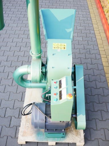Młyn bijakowy przeznaczony jest do rozdrabniania biomasy np. słoma, łodygi, kawałki płyt meblowych, drewno, słoma, liście i wiele wiele więcej na materiał idealny do produkcji pelletu. Jest to również idealne urządzenie do rozdrabniania produktów spożywczych np. orzechów, ryżu czy innych roślin. Urządzenie jest przeznaczone do pracy przemysłowej niemalże 24 h na dobę przerabiając do 500 kg biomasy na godzinę . W idealnych warunkach młyn bijakowy potrafi przerobić materiału na dwie peleciarki jednocześnie !! Jedynym warunkiem jest wstępnie osuszony towar do 18% wilgotności oraz średnica materiału do 50 mm (czyli np. gałęzie o średnicy ręki!)