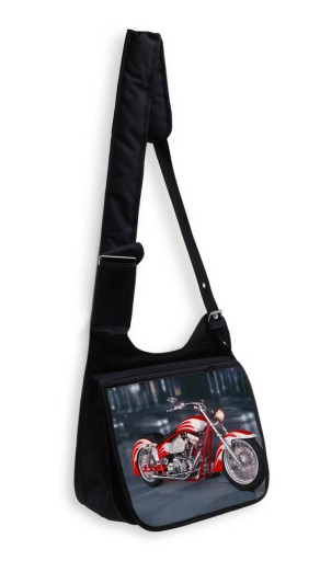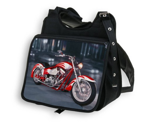 PIĘKNA TORBA Z KLAPKĄ DUŻA A4 Z NADRUKIEM - MOTOR.
