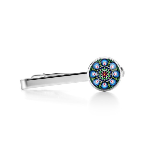 Ręcznie robiona spinka do krawata z wysokiej jakości grafiką oprawione w bazę w kolorze srebrnym wykonaną z mosiądzu.