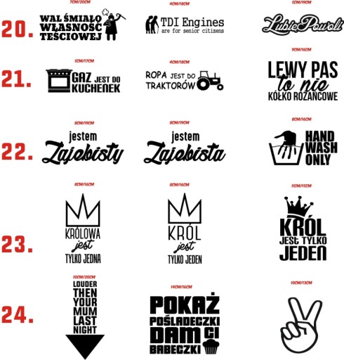 - Wymiar naklejki : opisany nad wzorami