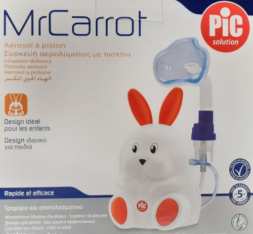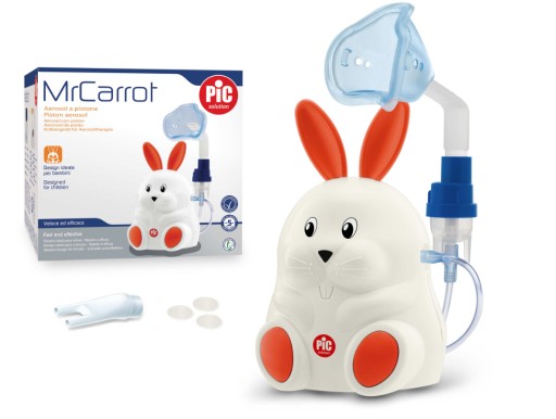 Mr Carrot nie tylko świetnie wygląda, ale przede wszystkim zapewnia szybką i efektywną terapię. To profesjonalny wyrób medyczny ukryty w zabawnej obudowie! Mr Carrot to najnowszy model inhalatora tłokowego marki PiC Solution, znanej na całym świecie z wyrobów medycznych o znakomitych parametrach i urzekającym wzornictwie. Bezpieczny dla dziecka dzięki specjalnie opracowanym zaokrąglonym kształtom, bez ostrych krawędzi. Mr Carrot to nie tylko zabawny króliczek „Pan Marchewka” ale także inhalator idealny dla całej rodziny – wyposażony w miękką maseczkę "2 w 1", ustnik oraz aplikator donosowy.
