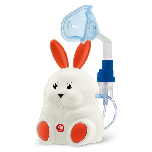 Szybki i efektywny inhalator tłokowy w kształcie królika. Profesjonalny wyrób medyczny ukryty w zabawnej obudowie.
