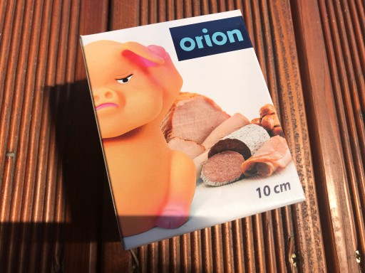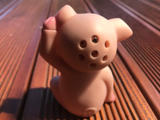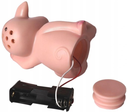 Posiada czujnik, reaguje na światło w lodówce. Za każdym razem gdy lodówka zostanie otwarta zacznie"chrumkać".