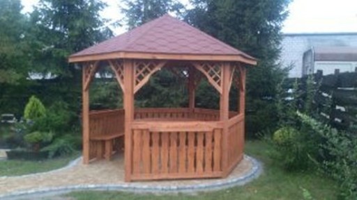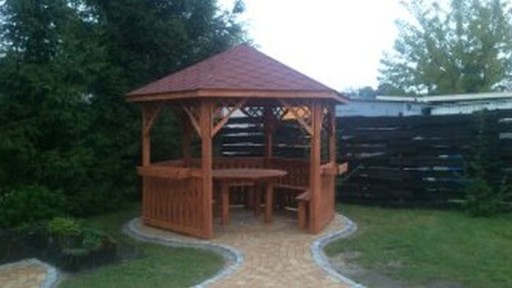 - altanę pomalowaną na tikowo lub brązowo