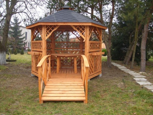 - altanę pomalowaną na tikowo lub brązowo
