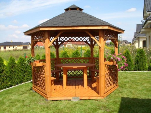 - altanę pomalowaną na tikowo lub brązowo