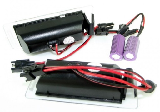 Komplet 2 lampek LED do oświetlenia tablicy rejestracyjnej, zamiennik oryginalnie stosowanego oświetlenia, z homologacją z możliwością legalnego użytkowania na europejskich drogach. Dużo lepszy efekt podświetlenia tablicy, którego nie zastąpią żadne zwykłe diody SMD.