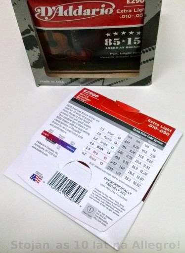 Komplet 6 strun Metalowych wysokiej jakości D'Addario do gitary akustycznej - prosto z USA