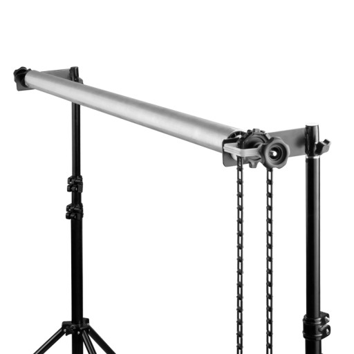System zawieszania tła, przeznaczony do mocowania na statywach oświetleniowych. Zestaw pozwala na montaż tła nawiniętego na kartonową lub aluminiową tuleję. Uchwyty odpowiedzialne za poruszanie tłem działają na zasadzie kołków rozprężnych, wkręcając je uzyskujemy trwałe połączenie tła z systemem zawieszania. Tło odwijane i nawijane przy pomocy łańcuszka z obciążnikiem.
