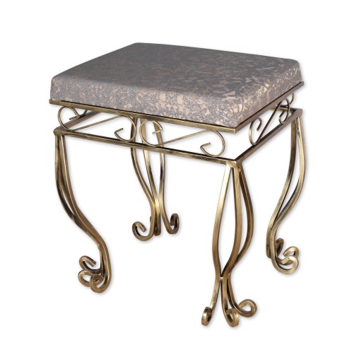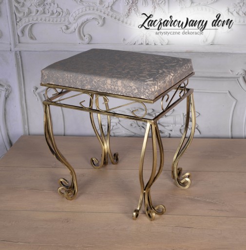 Eleganckie, doskonale wykonane krzesełko kute ze stali w kolorze stare złoto.