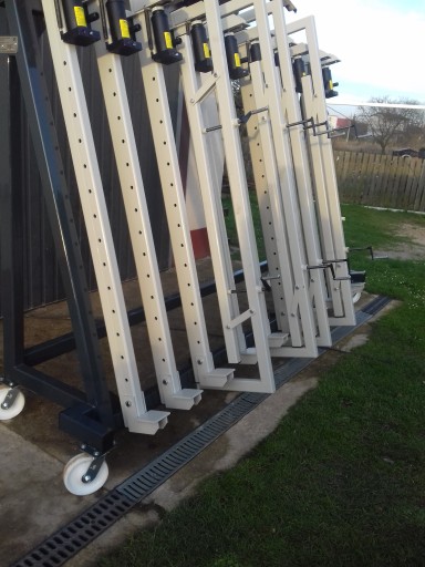 Prasa składa się z 10 ścisków który każdy posiada siłownik hydrauliczny ręczny z blokadą mechaniczną 3.5tony.