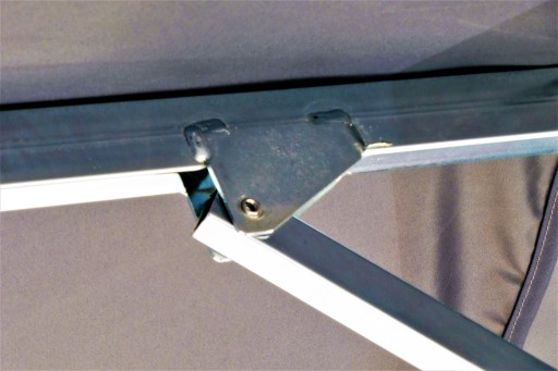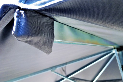 *solidna rozeta pod poszyciem u szczytu parasola dodatkowo zabezpieczona materiałem chroniącym przed uszkodzeniem materiału