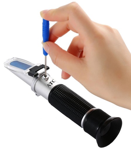 Przed pierwszym użyciem refraktometr należy skalibrować (wskazana temperatura otoczenia przy kalibracji 20°C, należy się także upewnić, że przyrząd osiągnął temperaturę otoczenia):