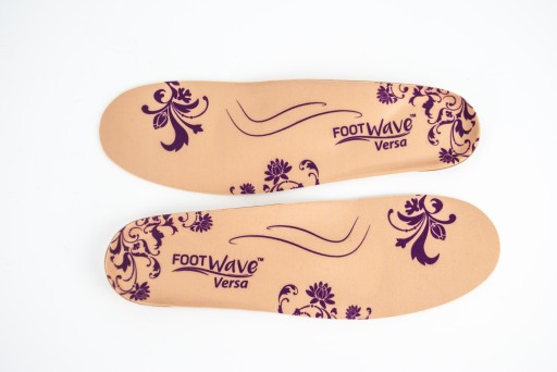 Wkładki FOOTWAVE VERSA zaprojektowane przez australijskich podiatrów wkładki ortopedyczne FootWave, dzięki unikalnej konstrukcji, ustawiają stopę i całą kończynę dolną w prawidłowej pozycji, wspierając w odpowiednich miejscach łuki stopy, co redukuje napięcie wywierane na rozcięgno podeszwowe. Oddziałując na przyczynę zapalenia rozcięgna podeszwowego wkładki FootWave pomagają złagodzić ból w okolicach pięty.