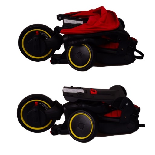 - podnieś przód rowerka, naciśnij obustronną blokadę znajdującą się pod kierownicą, złóż rowerek