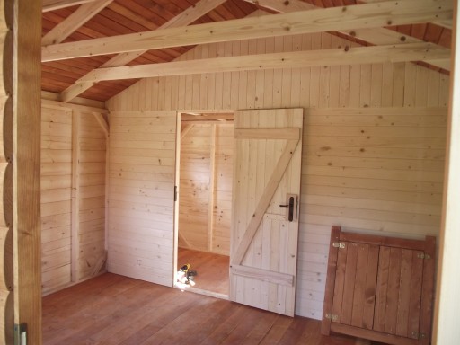 - Ściany z deski boazeryjnej (łączonej na wpust i pióro) - płaskiej, grub. 2cm