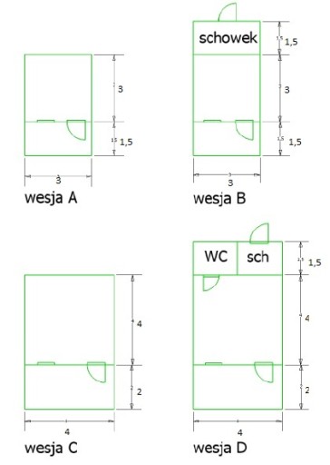 - Wymiary zewn. 4x5m w tym pomieszczenie zamknięte 4x3m+taras 4x2m