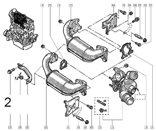2 . uszczelka turbo-kolektor wydechowy (część niedostępna przez serwisy Renault)