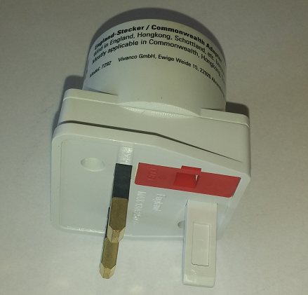 - przejście z gniazda m.in.z w krajach (w danym kraju mogą występowac też inne standardy) Bahrain, Bangladesz, Belize, Botswana, Brunei, Kamerun, Channel Islands, Chiny, Cypr, Dominika, El Salvador, Gambia, Ghana, Gibraltar, Grenada, Gwatemala, Guyana, Hong Kong, Irak, Irlandia, Isle of Man, Jordan, Kenia, Kuweit, Liban, Makao, Malawi, Malezja, Malediwy, Malta, Mauritius, Myanmar, Nigeria, Oman, Katar, St. Kitts-Nevis, St. Lucia, St. Vincent, Arabia Saudyjska, Seszele, Sierra Leone, Singapur, Tanzania, Uganda, Zjednoczone Emiraty Arabskie, Wielka Brytania, Szkocja, Jemen, Zambia, Zimbabwe i inne - patrz zdjęcie niżej, na gniazdo typu europejskiego lub USA.