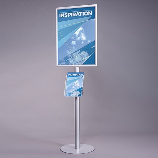 Stojak na plakat A2 i ulotki 2xA4 z metalową kieszenią