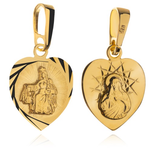 Medalik z wizerunkiem Matki Boskiej Szkaplerznej , a na odwrocie z otwartym sercem Pana Jezusa ,wykonany w całości z najwyższej jakości srebra próby 925,pozłacany * .