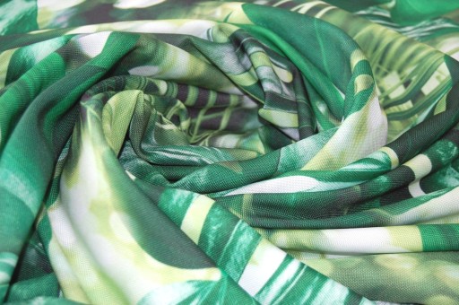 Tkanina zasłonowa oxford drukowana w motyw lasu, liści monstery. Tło koloru ecri ,ale bardzo mało wzór w liściem, nadruk foto, bardzo realistyczny. Tkanina kryjąca , ale niezaciemniająca, bardzo ładnie się układa. Daje wrażenie naturalnej, matowa.