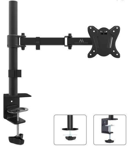 - Do uchwytu bez problemu przymocujemy ekran w standardzie VESA: 75x75, 100x100 mm