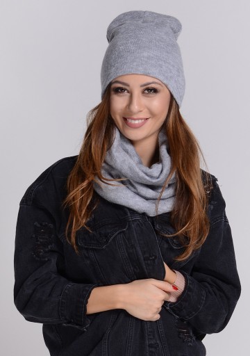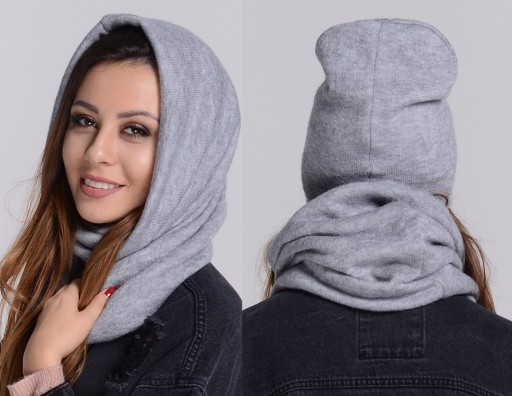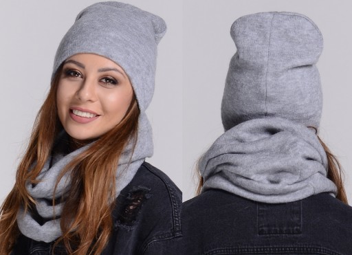 Czapka w rozmiarze uniwersalnym, dopasowuje się do głowy. Gęsto tkany materiał zapewni uczucie ciepła w chłodne dni. Komplet jest niezastąpioną częścią garderoby podczas jesiennej i zimowej aury, jego uniwersalność pozwala nosić go na wiele sposobów. Czapka jest delikatnie opadająca, ładnie się układa, można ją regulować zarówno wywijając na zewnątrz lub do wewnątrz w celu dopasowania dla siebie. Natomiast komin tubę można nosić klasycznie lub też jako kaptur, okrycie głowy.