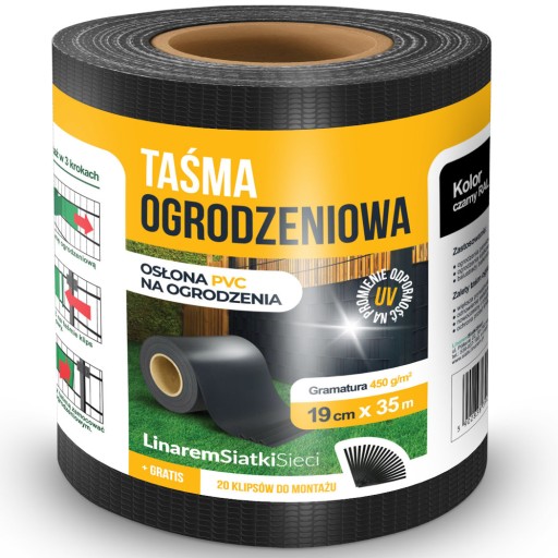 Taśma Ogrodzeniowa PCV z powłoką ochronną 19 cm x 35 m Linarem SiatkiSieci!