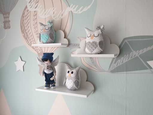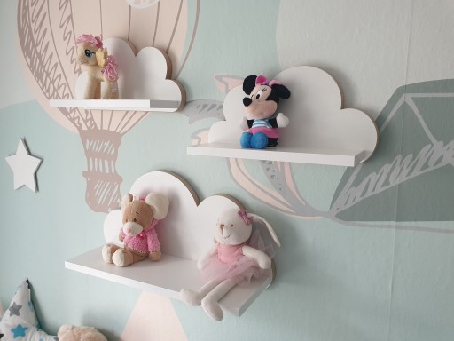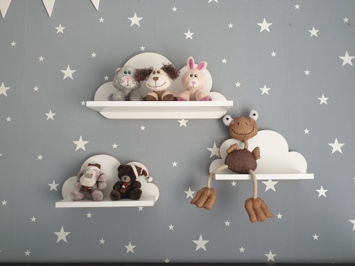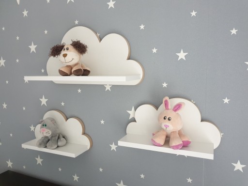 - Półki wykonane w stylu skandynawskim, cechuje je prostota połączona z nienagannie wypracowanym designem. Boki chmurek nie są malowane, pozostają w kolorze naturalnego MDF,