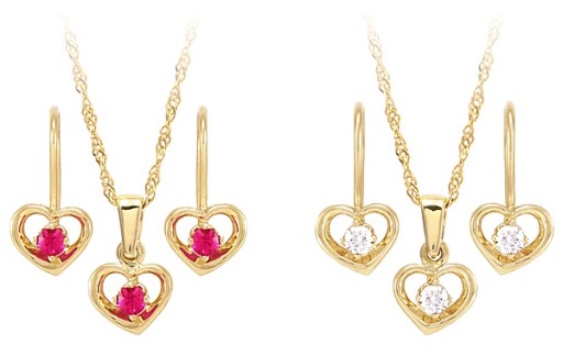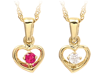 Przedmiotem aukcji jest jeden dowolnie wybrany komplet, łańcuszek z wisiorkiem w kształcie serduszka z białą lub rubinową cyrkonią.