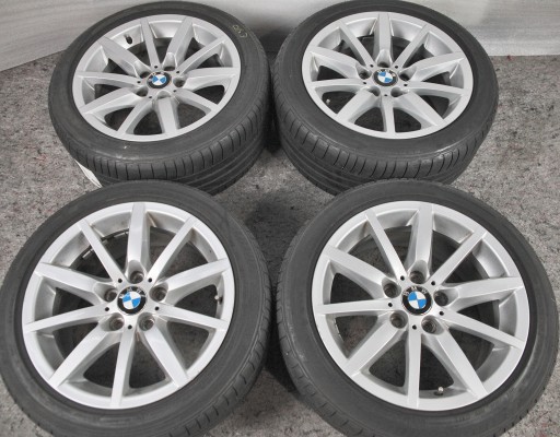 komplet (kombinacja Przód-Tył)oryginalnych felg aluminiowych BMW (nr z oponami letnimi Bridgestone potenza RE050AI (Run Flat) ,w rozmiarze Przód-225/45/17",indeks 91V,wysokość bieznika 2x7mm,Dot 1311,Tył-255/40/17",indeks 94V,wysokość bieznika 5-4mm,Dot 1011.Parametry felg Przód-8Jx17EH2+,5x120,Et34,Tył-8.5Jx17EH2+,5x120,Et39.Felgi prościutkie,nieregenerowane,oryginalny lakier,prosto z Niemiec. Podana cena dotyczy kompletu 4 felg z dekielkami.!!!