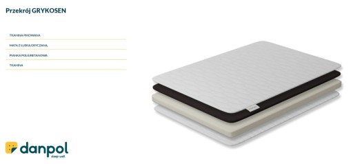 Gryko SEN to jednostronny materac, którego najważniejszym elementem jest właśnie warstwa gryczana. Dzięki zawartym w łusce gryki taninom jesteś zabezpieczony przed roztoczami i bakteriami. Układ łusek w przepikowanych saszetkach gwarantuje przepływ powietrza i kontroluje wilgotność ciała. Gdy poruszasz się na materacu, łuski delikatnie masują Twoją skórę i tkankę podskórną. Wkład wykonany z pianki wysokiej jakości wspiera układ kostny.