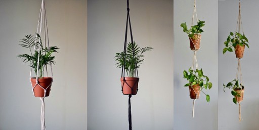 Подвесная подставка для цветов макраме - Джут